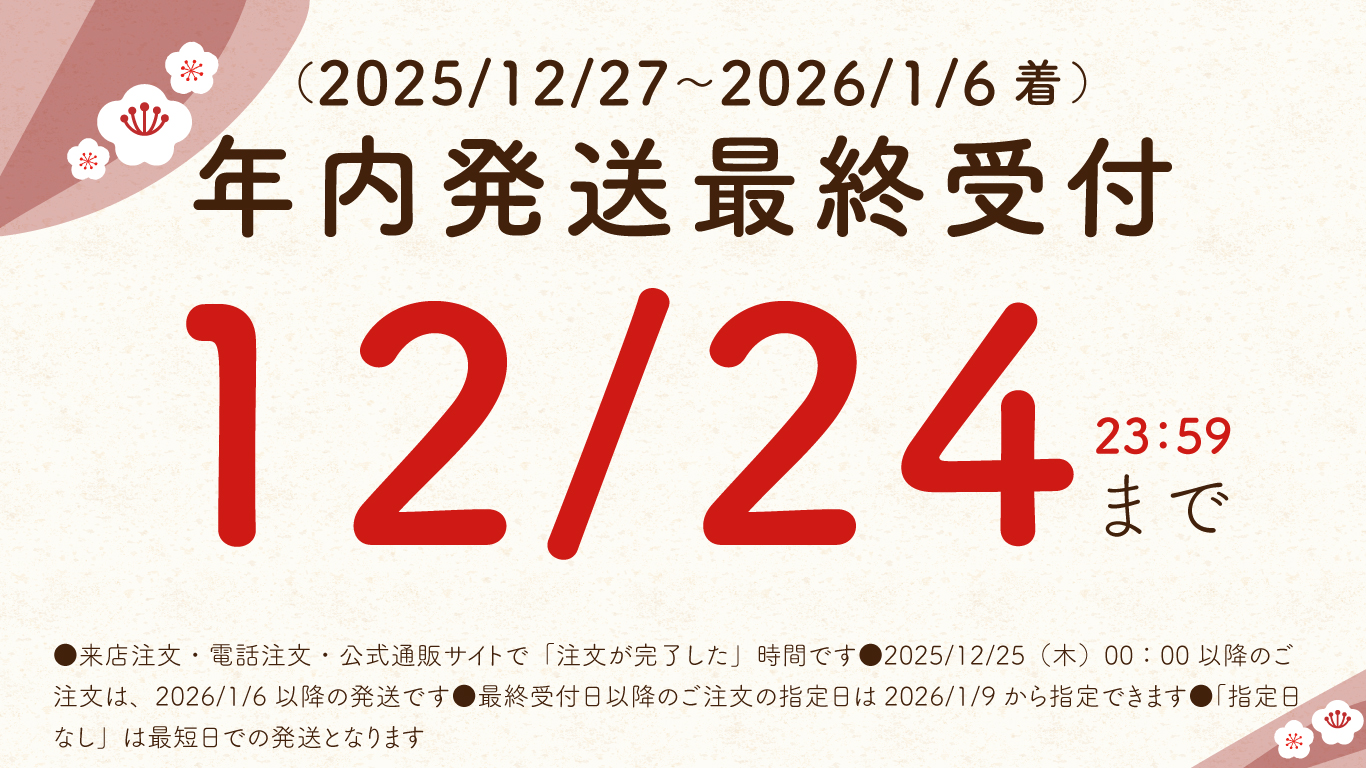 ・年内発送をご希望のお客様:12月25日までにご注文ください。