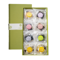 きな粉白玉×1、黒みつ×1、つぶあん×1、 みたらし×1、抹茶みつ×1、ごまみつ×1、いきなり白玉×2 定番のやわみ白玉甘味小鉢のセット箱。 北海道のみ、別途送料【600円】加算されます。 オプションからお選びください。 ------------------------------------------------------------------------------------------------------------------- 賞味期限     製造より冷凍で180日 ------------------------------------------------------------------------------------------------------------------- 特定原材料名   【白玉団子】なし          【黒みつ】なし          【つぶあん】なし          【きなこ】(表示推奨品含む)大豆          【いきなり白玉】乳成分 ------------------------------------------------------------------------------------------------------------------- 原材料名     【白玉団子】白玉粉(もち米(国産))、上新粉、麦芽糖/トレハロース、           乳化剤、安定剤(アカシアガム)          【黒みつ】砂糖(さとうきび(国産))          【つぶあん】小豆(北海道産)、砂糖、還元水飴、食塩、寒天/トレハロース          【いきなり白玉】さつまいも(国産)、つぶあん          (小豆、砂糖、還元水飴、食塩、寒天)、           白玉粉(もち米(国産))、砂糖、上新粉、無塩バター、麦芽糖/          トレハロース、乳化剤、安定剤(アカシアガム)、(一部に乳成分を含む)          【きなこ】きなこ(大豆を含む、国産)、砂糖(国産)、食塩 ------------------------------------------------------------------------------------------------------------------- 保存方法     冷凍(−18℃以下)で保存してください          解凍後、冷蔵(10℃以下で解凍日含め3日) ------------------------------------------------------------------------------------------------------------------- カロリー     (1個当たり)          【黒みつ】112kcal          【つぶあん】166kcal          【きなこ】133kcal          【いきなり白玉】188kcal(100gあたり) -------------------------------------------------------------------------------------------------------------------